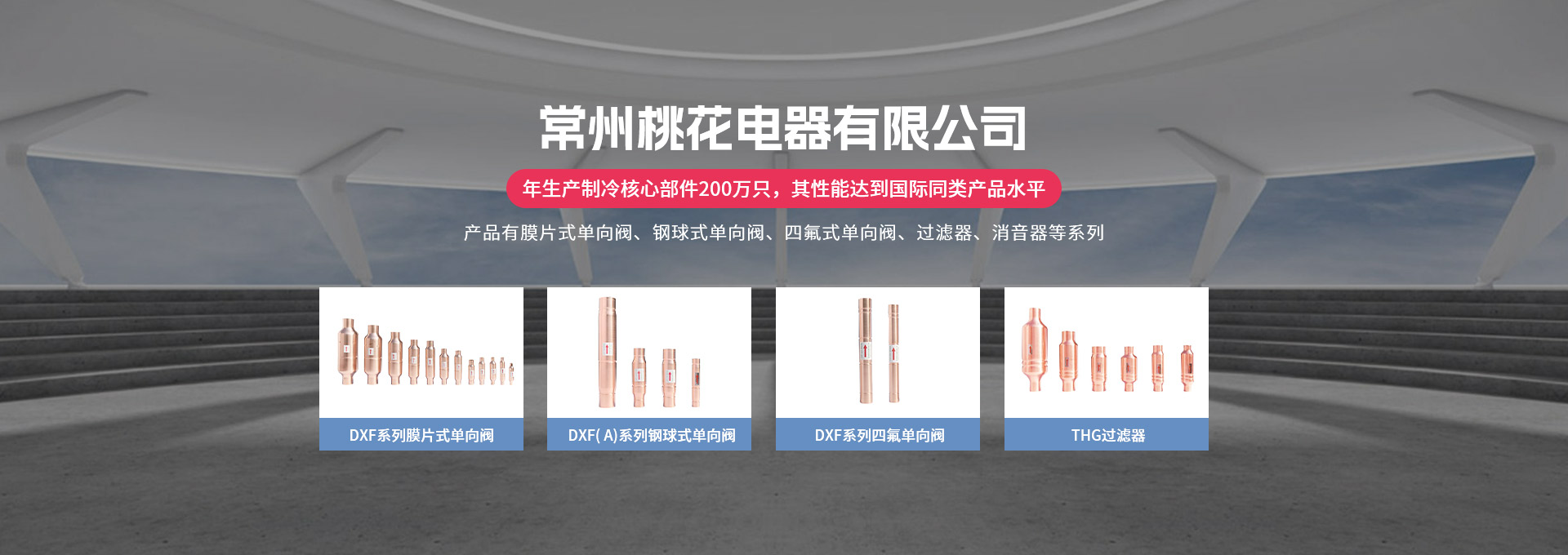 常州桃花電器有限公司地處中國長江“金三角”之稱的上海至南京高速公路、城際高鐵、常州高新經濟技術開發區路段,交通便利、技術力量十分雄厚。它是集研究、開發設計、制造和經營制冷核心部件的企業,主要生產中央空調上使用的制冷部件。產品有膜片式單向閥、鋼球式單向閥、四氟式單向閥、過濾器、消音器等系列。年生產制冷核心部件200萬只,其性能達到國際同類產品水平。  企業擁有先進的科學技術、國際先進的生產加工設備和精密的檢測儀器,并已通過ISO9001質量體系及CE認證,公司歷史悠久,2000年起,經過長期積累、沉淀,經驗豐富,從而保證了產品的高質量、高性能、高耐用性。企業產品在國內外市場具有較高的知名度,深受眾多中外品牌制冷客商的好評。主要客戶有約克、麥克維爾、美的、開利、特靈、頓漢布什、清華同方、天加等.并出口北美、歐洲、東南亞等地區?! 「咂焚|產品是企業的保證,周到服務是合作友誼的承諾,企業本著“求